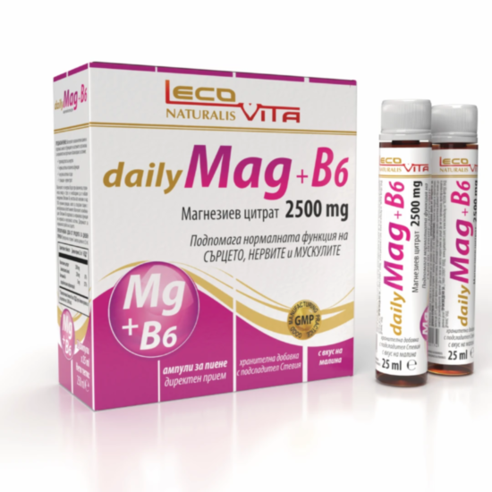 Daily Mag + B6 на Лековита е продукт, създаден да подпомага мускулния тонус, сърдечното здраве и нормалната функция на нервната система. Формулата е обогатена с органичен магнезий, който осигурява повече енергия през деня и подпомага спокойния сън през нощта.