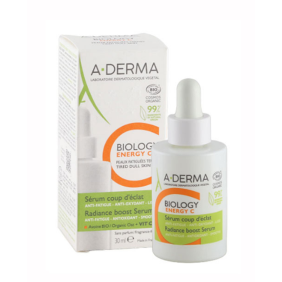 A-DERMA Biology Energy C е иновативен озаряващ бустер серум за възстановяване на енергията, блясъка и жизнеността на кожата. Той комбинира стабилизиран витамин C, натурални съставки и сок от овес Rhealba®.