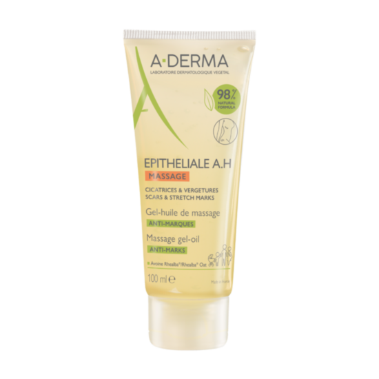Предназначено за лице и тяло, масажното гел-олио от A Derma е създадено да се бори срещу неестетични белези и стрии. То се отразява отлично върху уязвимата кожа след фазата на реепителизация, предразположена към остатъчни неестетични белези. С иновативна и обогатена формула с Cicahylumide, която успокоява кожата мигновено и дълготрайно, оставя фин и хидратиращ слой, който възстановява усещането за комфорт и намалява желанието за разчесване. Нежната и деликатна текстура се нанася лесно и приятно, а след използване лицето и тялото са успокоени, защитени и с по-добър външен вид. Предлага се в опаковка от 100 мл.