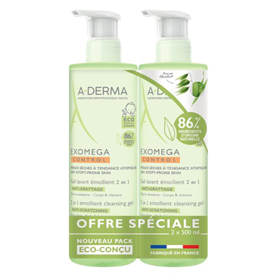 А-ДЕРМА КОМПЛЕКТ ЕКЗОМЕГА ЕМОЛИЕНТЕН ПОЧИСТВАЩ ГЕЛ 2В1 500МЛ Х 2 А