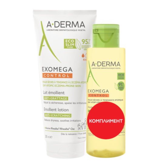 А-ДЕРМА КОМПЛЕКТ ЕКЗОМЕГА КОНТРОЛ ЕМОЛИЕНТНО МЛЯКО 200МЛ+ЕКЗОМЕГА ДУШ ОЛИО 100МЛ В