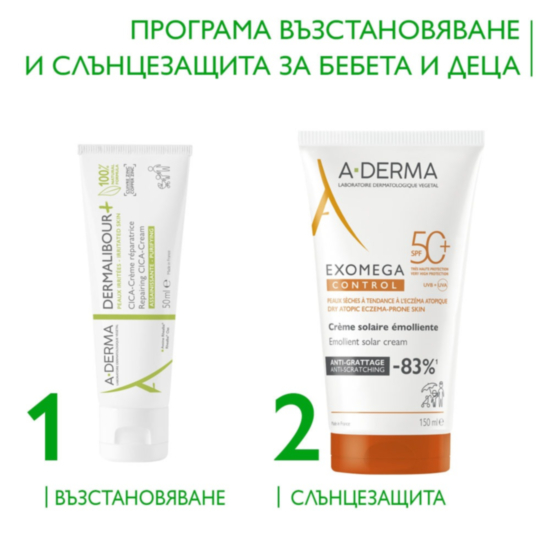 А-ДЕРМА РУТИНА ВЪЗСТАНОВЯВАНЕ И СЛЪНЦЕЗАЩИТА ЗА БЕБЕТА И ДЕЦА