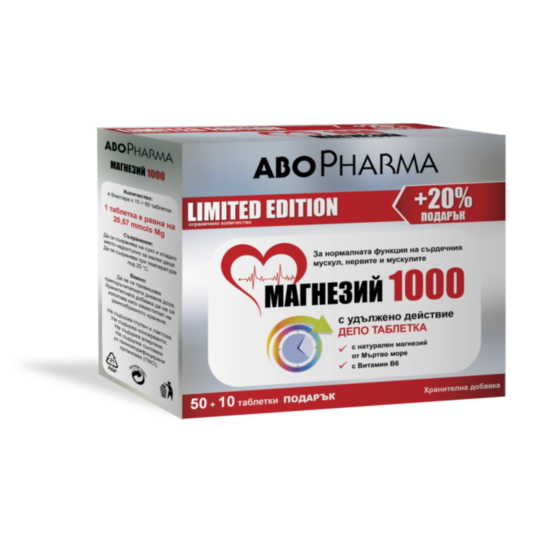 АБОФАРМА МАГНЕЗИЙ ТАБЛ.1000+ В6 С УДЪЛЖЕНО ДЕЙСТВИЕ 50+10