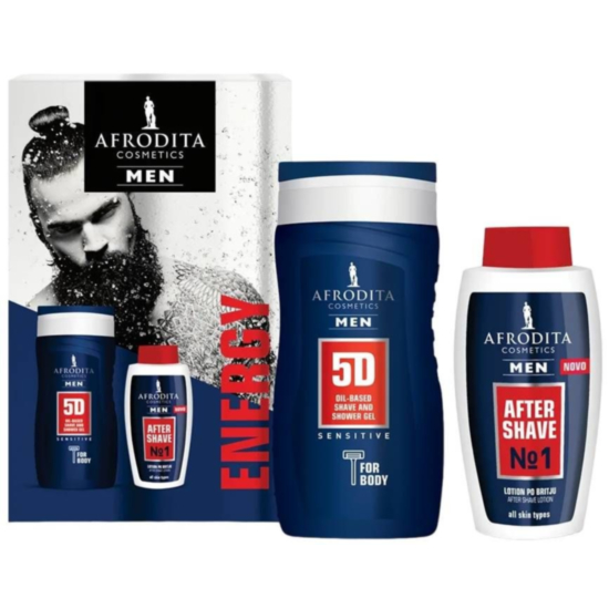 Подаръчният комплект на Afrodita Cosmetics Men съдържа душ гел и лосион за след бръснене, които осигуряват нова енергия, усещане за свежест и добре хидратирана кожа. Той е предназначен за мъжа, който харесва всестранната гъвкавост на продуктите на маслена основа, както и усещането за релакс и приятно ароматизирана кожа след бръснене.