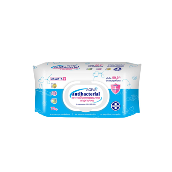 АГИВА АНТИБАКТЕРИАЛНИ КЪРПИ Х 72БР. /СИНИ/ са мокри кърпи, които унищожават 99,9% от патогенните микроорганизми! Почистват и дезинфекцират без необходимост от вода. Осигуряват надеждна антибактериална защита, като същевременно не дразнят кожата и имат приятен аромат.