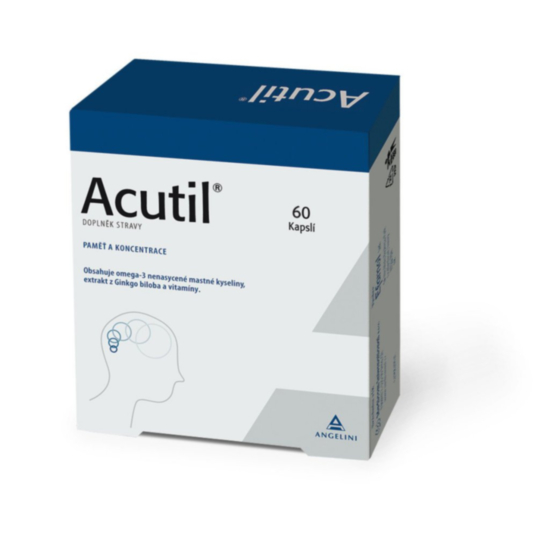 Акутил стимулира паметта и функциите на мозъка. Съдържа омега-3 мастни киселини, екстракт от гинко билоба, фосфатидилсерин, витамин Е, фолиева киселина, витамин В12.