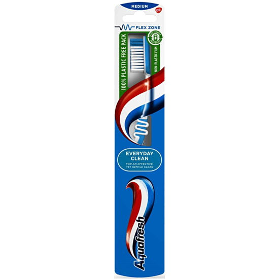 АКВАФРЕШ ЧЕТКА ЗА ЗЪБИ EVERYDAY CLEAN МЕДИУМ С КАПАЧЕ 2802041 - Продуктът е със средно мек косъм, подвижна и гъвкава глава, което я прави изключително удобна и лесна за употреба. Четката притежава и ергономична дръжка за по-добро достигане на венците и гъвкавата Flex зона, която спомага да се контролира натискa върху тях.