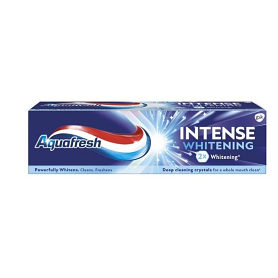 АКВАФРЕШ ПАСТА ЗА ЗЪБИ ИНТЕНС ИЗБЕЛВАЩА 75МЛ е паста за зъби с избелващо действие и свеж вкус. Формулата притежава в състава си по-малко полиращи частици, спрямо традиционните пасти за зъби. Тяхното действие обаче е по-ефективно и постигат по-добър резултат, като в същото време не са агресивни към повърхността на емайла и той остава здрав и блестящ. Пастата осигурява баланс между ниско количество избелващи елементи, висока защита на емайла и качествено почистваnе от остатъците от храна по зъбите.