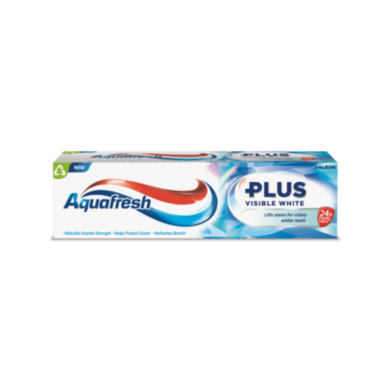 АКВАФРЕШ ПАСТА ЗА ЗЪБИ PLUS VISIBLE WHITE 75МЛ - нов продукт от линията продукти за устна хигиена Aquafresh. Помага за предотвратяване на кариес, поддържа венците здрави и укрепва зъбния емайл. Нежно премахва плаката и оставя усещане за свеж дъх за дълго време