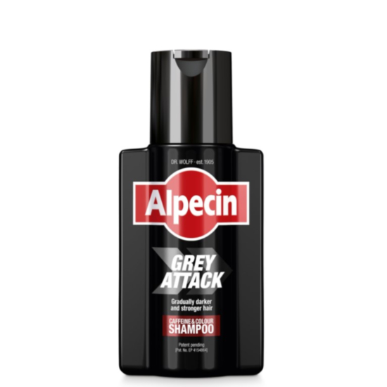 АЛПЕЦИН GREY ATTACK ШАМПОАН 200МЛ е най-доброто за всички мъже, които искат да направят нещо за своите (първи) сиви коси: възможност да направите косата отново по-тъмна стъпка по стъпка само за две до пет минути на ден докато се къпете - с естествено изглеждащ цвят!