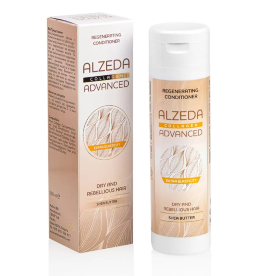 Нежно разнесете по дължината на косата до краищата. Оставете да престои 1-2 мин и изплакнете с вода. За най-добри резултати, използвайте заедно с деликатен шампоан за коса “Alzeda Advanced” с колаген.