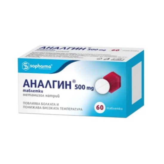 Analgin на фармацевтичната компания Софарма е обезболяващ лекарствен продукт, който се използва за повлияване на болков синдром от различен произход: зъбобол, невралгии, неврити, миалгии, травми, изгаряния, следоперативни болки, фантомна болка, дисменорея, бъбречни и жлъчни колики и главоболие. Също така Аналгин се използва и като антипиретично средство в комплексната терапия на остри възпалителни заболявания на горните дихателни пътища, трахеити и трахеобронхити, инфекциозни заболявания. Аналгин съдържа метамизол натрий - аналгетик от групата на пиразолоните с изразено аналгетично и антипиретично действие. Притежава по-слаба противовъзпалителна активност, както и леко спазмолитично действие.