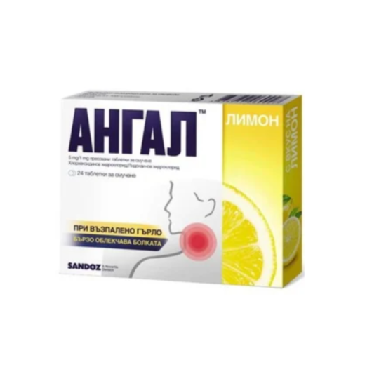 Angal Lemon compressed lozenges e лекарствен продукт под формата на таблетки за смучене, който се препоръчва при лечение на симптомите на зачервено, възпалено гърло, заболявания на фаринкса и устната кухина, съпроводени с раздразнения като възпаление на венците, устната лигавица и афти, както и в случаи на бактериална инфекция, съпроводена с висока температура е необходимо допълнително лечение.