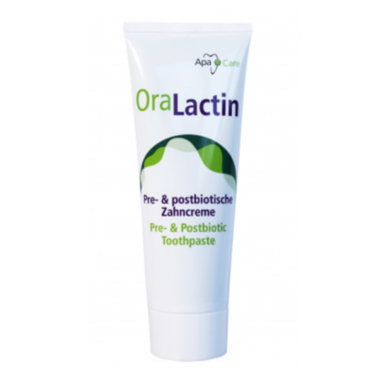 АПАКЕЪР ОРАЛАКТИН ПРЕ И ПРОБИОТИЧНА ПАСТА ЗА ЗЪБИ С ТЕЧЕН ЕМАЙЛ 70МЛ е специална паста за зъби за поддържане и установяване на здрава орална флора. Тя е с течен зъбен емайл. Състои се от хидроксиапатит, основният компонент на естествените зъби. Изсветлява зъбите, предпазва от кариес, пародонтоза и намалява чувствителността. Предлага се в опаковка от 70мл.