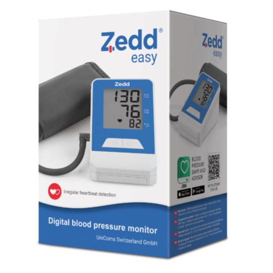 Zedd Easy е автоматичен цифров апарат за измерване на кръвното налягане с функция за засичане на аритмичен пулс.