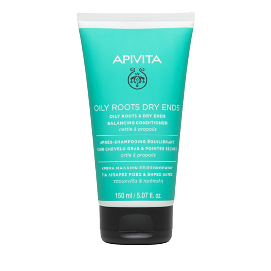 АПИВИТА БАЛСАМ ЗА МАЗНИ КОРЕНИ И СУХИ КРАИЩА БАЛАНСИРАЩ 150МЛ - Апивита балсам за коса с мазни корени и сухи краища с ултра лека текстура. Обогатен с мед от мащерка, екстракти от прополис и коприва, пантенол, пшеничен протеин, масла от градински чай и грейпфрут, Apishiel HS комплекс и инфузия от розмарин. Регулира омазняването, хидратира сухите краища, прави косата здрава и обемна. Екстрактите от коприва и прополис подхранват и балансират омазняването в корените. Медът от мащерка и пшеничните протеини интензивно хидратират и възстановяват увредените краища. Apishiel HS комплекс предотвратява цъфтежите и накъсването, и защитава косата от външни агресивни фактори. Инфузията от розмарин има тонизиращ и противостареещ ефект. Формула с 97% натурални съставки. Дерматологично тестван.