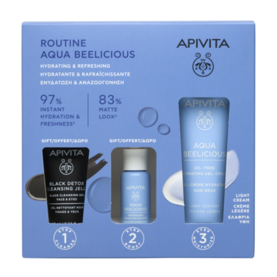АПИВИТА КОМПЛЕКТ AQUA BEELICIOU ГЕЛ-КРЕМ 40МЛ+ХИДРАТИРАЩ БУСТЕР 10МЛ+ЧЕРЕН ПОЧИСТВАЩ ГЕЛ 15МЛ