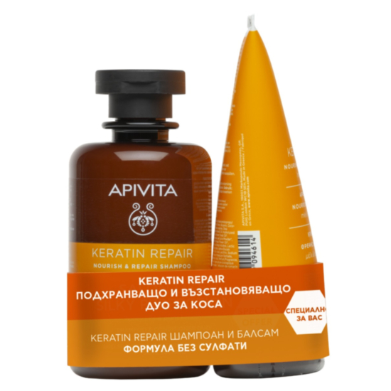 АПИВИТА КОМПЛЕКТ KERATIN REPAIR ШАМПОАН 250МЛ+БАЛСАМ 150МЛ