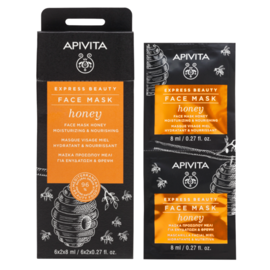 АПИВИТА МАСКА ЗА ЛИЦЕ С МЕД 2Х8 МЛ -  Маската за лице с мед на Апивита е хидратираща, подхранваща и богата на микроелементи и витамини. Тя възстановява еластичността и здравината на кожата, правейки я гладна и мека. Маската е от линията Express Beauty, която е вдъхновена от средиземноморската диета и нейното богато разнообразие от плодове и зеленчуци, които ни дават ценни вещества, доставящи балансирана храна и здраве на нашата кожа. Водата във формулата е заменена с антиоксидантна инфузия от гръцки планински чай с антиоксидантно действие. Дерматологично тестван. Не съдържа парабени, силикони, пропилен гликол, етаноломини, фталати, минерални масла, РСМ, NM.