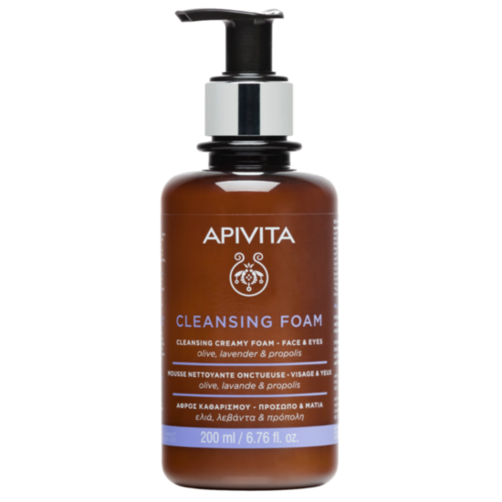 АПИВИТА ПОЧИСТВАЩА ПЯНА ЗА ЛИЦЕ И ОКОЛООЧЕН КОНТУР 200МЛ - Деликатната почистваща пяна за лице и околоочен контур Апивита има кремеообразна текстура, която е подходяща за всякакъв тип кожа. Тя почиства лицето и очите от замърсявания и грим, без да предизвиква раздразнения. Благодарение на растението Saponaria (сапунче) кожата на лицето остава чиста и мека, без да се дехидратира. Дерматологично и офталмологично тестван. Съдържа 92% натурални съставки. Не съдържа парабени, силикони, пропилен гликол, етаноломини, фталати, минерални масла, РСМ, NM. Водата във формулата е заменена с инфузия от зелен чай. Предлага се в опаковка от 200 мл.