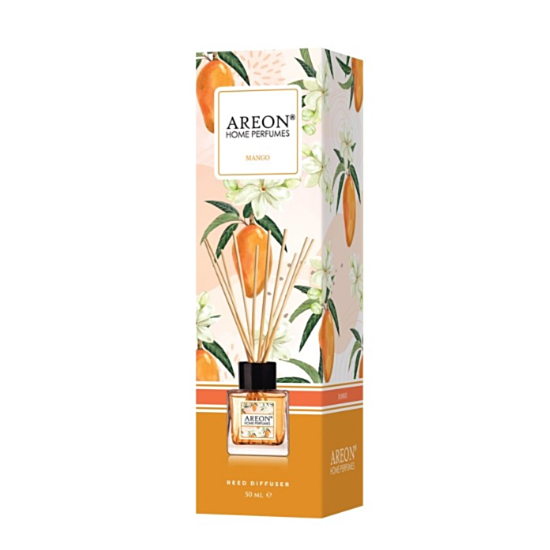 АРЕОН ПАРФЮМ ЗА ДОМА МАНГО 50МЛ е създаден, за да изпълва дома ви с деликатен и траен аромат. Дизайнът му вдъхновява и придава стил на всеки интериор, а свежият му аромат вдъхва живот на спалнята, всекидневната, или офиса ви. Парфюмът се предлага в опаковка от 50 мл.