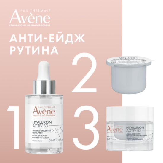 АВЕН ХИАЛУРОН АКТИВ В3 РЕГЕНЕРИРАЩ АКВА ГЕЛ-КРЕМ 50МЛ е регенериращ аква гел-крем, създаден да се бори с признаците на стареене на кожата. Съдържа 0,45% чиста хиалуронова киселина с високо и средно молекулно тегло и ниацинамид (6%), които действат върху причините за стареенето и подпомагат удължаването на живота на клетките. Този аква гел-крем има лека текстура, която при нанасяне прави кожата плътна, гладка и сияйна. След 15 дни на употреба, кремът регенерира кожата, стяга я и коригира бръчките. Текстурата му е свежа, с деликатен флорален аромат, който осигурява комфорт през целия ден. Продуктът може да се използва като ежедневен крем или като 48-часова хидратираща маска за по-интензивна грижа за кожата. Авен Хиалурон Актив Б3 Регенериращ аква гел-крем е екологичен, като съдържа 91% съставки от естествен произход и не съдържа съставки от животински произход.