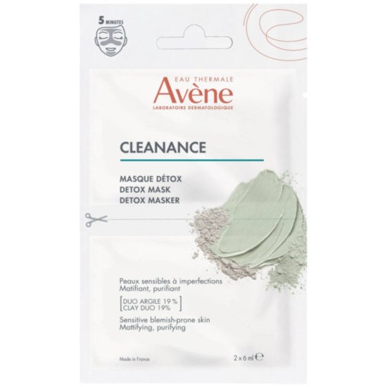 Безкомпромисна детоксикираща маска за чувствителна кожа с петна. Благодарение на ексклузивната комбинация от концентрирани абсорбиращи глини (19%) и ексфолиращ перлит, тя почиства, матира и стяга порите само за 5 минути*. Продуктът оставя кожата приятна и успокоена благодарение на хидратиращите агенти, свързани с термалната вода Avène. В резултат петната намаляват при 90% от потребителите**.