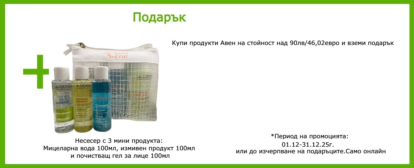 Почистващ гел: Avene Thermal Spring Water (Avene Aqua) , Water (Aqua) , Zinc Coceth Sulfate , Lauryl Betaine , Decyl Glucoside , Ceteareth-60 Myristyl Glycol , Peg-7 Glyceryl Cocoate , Polysorbate 20 , Citric Acid , Fragrance (Parfum) , Green 5 (Ci 61570) , Isopropyl Alcohol , Peg-40 Hydrogenated Castor Oil , Peg-6 , Ppg-26-Buteth-26 , Silybum Marianum Fruit Extract , Sodium Benzoate , Sodium Chloride , Sodium Hydroxide , Trisodium Ethylenediamine Disuccinate , Yellow 5 (Ci 19140) , Zinc Gluconate.