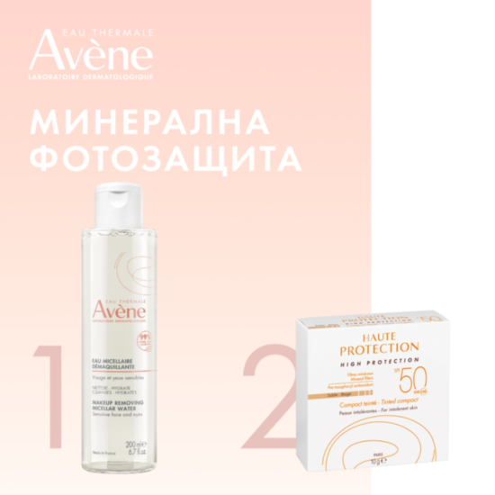 АВЕН РУТИНА ЗА ПОЧИСТВАНЕ И МИНЕРАЛНА ФОТОПРОТЕКЦИЯ - SUN МИНЕРАЛНА КРЕМ-ПУДРА ПЯСЪЧЕН ЦВЯТ SPF50 + МИЦЕЛАРНА ВОДА 200МЛ