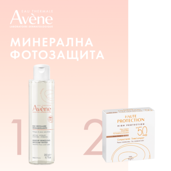АВЕН РУТИНА ЗА ПОЧИСТВАНЕ И МИНЕРАЛНА ФОТОРПОТЕКЦИЯ - МИНЕРАЛНА КРЕМ-ПУДРА МЕДЕН ЦВЯТ SPF50 ЗА ЛИЦЕ 10ГР + МИЦЕЛАРНА ВОДА 200МЛ