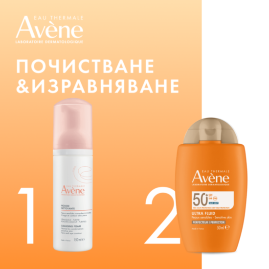 АВЕН РУТИНА ЗА ПОЧИСТВАНЕ И ТОНИРАЩА ФОТОЗАЩИТА - ПОЧИСТВАЩА ПЯНА 150МЛ + ТОНИРАН СЪН УЛТРА ФЛУИД SPF50+ 50МЛ - /62186 + 96803/