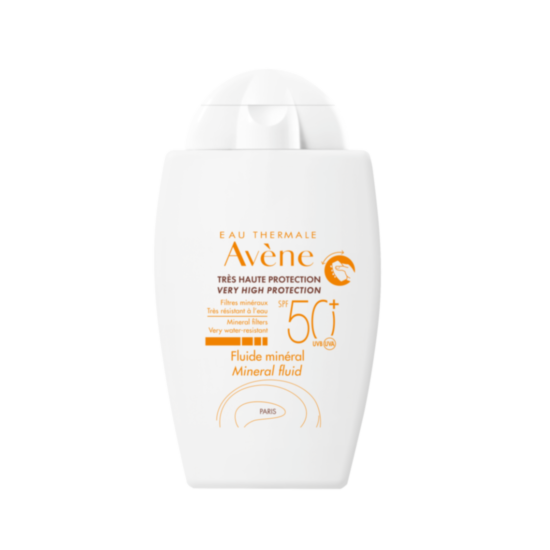 Перфектен баланс между много висока защита от UVB-UVA (къси и дълги) лъчи, и добра поносимост за нетолерантна към химични филтри и аромати кожа. 100% минерален комплекс. Провитамин E (Пре-токоферил), мощен антиоксидант, който осигурява клетъчна защита от свободните радикали. Неговата флуидна и лека текстура хидратира* чувствителна и/или нетолерантна кожа. Включената в състава Термална вода Avène, с успокояващи и омекотяващи свойства, насочена към раздразнения, осигурява ежедневен комфорт. Слънцезащита с матиращ завършек, без бели следи, без аромат, водоустойчива.