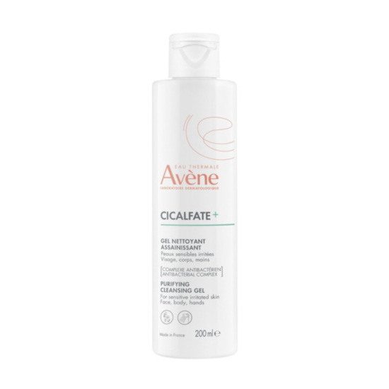 Avene Cicalfate+ Почистващ измивен гел за чувствителна и раздразнена кожа е неизсушаващ почистващ гел, който успокоява и дезинфекцира раздразнената кожа. Подходящ е за поддържане на хигиената на лицето, тялото, външните интимни зони, ръцете и скалпа на бебета, деца и възрастни. Подходящ за ежедневни раздразнения (обриви от пелени, драскотини, интимен дискомфорт, детски кожни обриви, татуировки, повърхностни дерматологични процедури, грижа за пъпната връв...), този измиващ гел е разработен без парфюм и съдържа 98% съставки от естествен произход. Формулата му помага да се намали раздразнението, а почистващото му действие ограничава риска от размножаване на бактерии. Нежният душ-гел Авен Цикалфат плюс се предлага в бутилка от 100% рециклирана и рециклируема пластмаса, с отвинтваща се капачка, също предназначена за рециклиране. Приятната му синя текстура се разпенва при нанасяне.