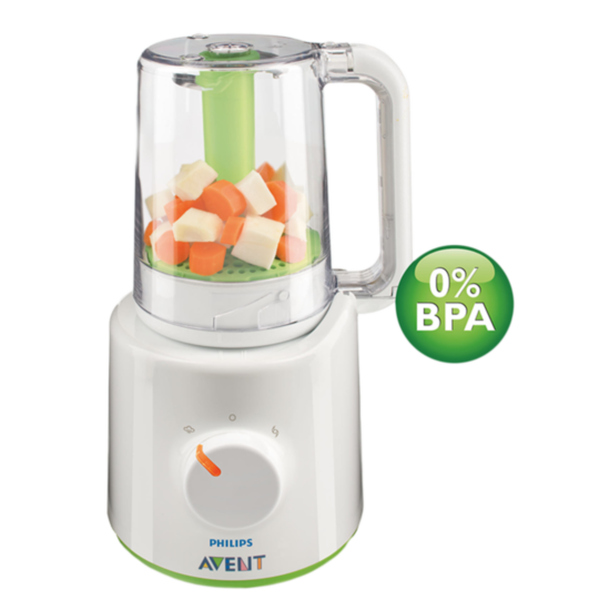 Avent Комбиниран уред за готвене на пара и блендер идва с 12 подходящи за възрастта рецепти и съвети за отбиване, които да ви помогнат да дадете на вашето бебе здравословен старт в живота и да му създадете добри навици за хранене за цял живот.