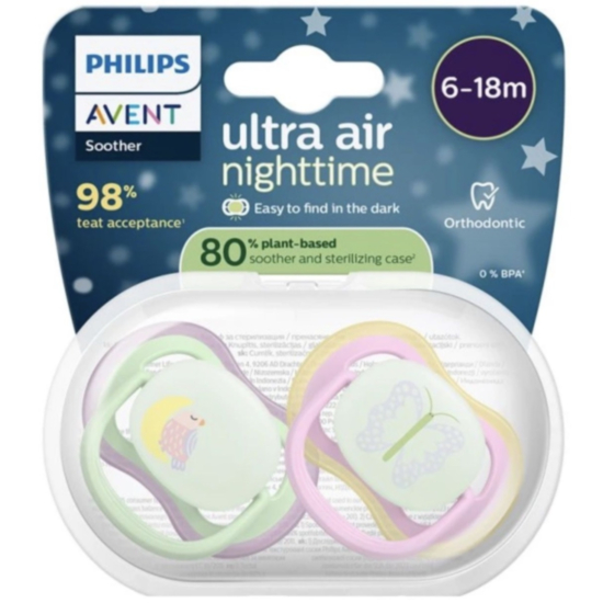 АВЕНТ ЗАЛЪГАЛКИ ОРТОДОНТИЧНИ ULTRA AIR НОЩНА 6-18M X 2БР ЖИВОТНИ МОМИЧЕ SCF376/29