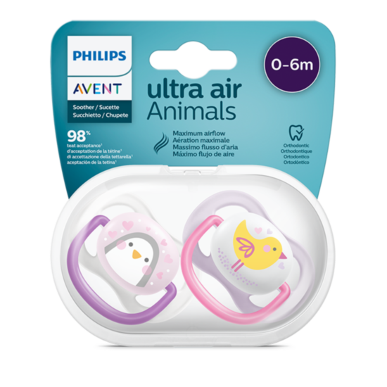АВЕНТ ЗАЛЪГАЛКА ULTRA AIR 0-6М Х 2БР С КАРТИНКА ПИНГВИН И ПТИЧКА ОРТОДОНТИЧНА