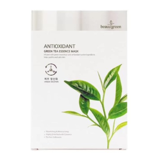 БЕАУГРИЙН ТЕКСТИЛНА МАСКА СЪС ЗЕЛЕН ЧАЙ - Текстилна маска за лице със съдържание на Зелен чай, който осигурява дълготрайна хидратация за сухата и дехидратирана кожа. Зеления чай има антиоксидантно действие, което пречиства кожата.