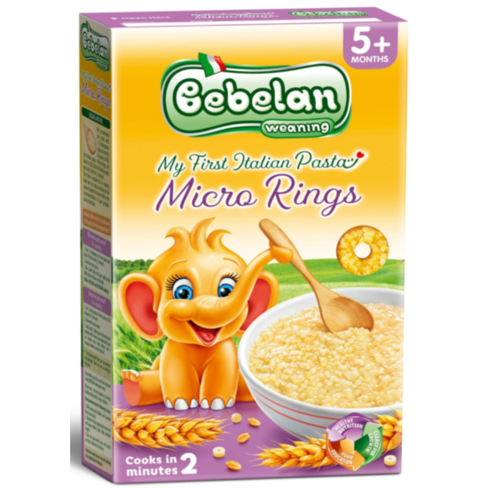 БЕБЕЛАН МИКРО ПАСТА КРЪГЧЕТА 5+М 350 ГР - Италианската паста Bebelan e създадена специално, за да задоволи нарастващите нужди на кърмачето от важни хранителни вещества и да подпомогне развитие на здравословни хранителни навици от най-ранна възраст. Паста Bebelan осигурява на бебето оптимален дневен прием на хранителни вещества, витамини от група В и калций. Предлагайки паста на вашето бебе, вие подпомагате правилното му развитие и му давате възможност да опита различен вкус и консистенция.