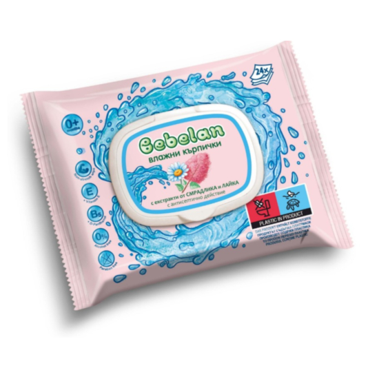БЕБЕЛАН МОКРИ КЪРПИ СМРАДЛИКА И ЛАЙКА Х 24 - представляват мокри кърпи от специален нетъкан текстил - изключително мек и приятен при допир до нежната бебешка кожа. Със своята формула без парабени, напоени с натурални екстракти от смрадлика и лайка деликатно почистват и освежават, предпазвайки нежната бебешка кожа от възпаления. Не съдържат алкохол. Удобни за употреба навсякъде и по всяко време. Без парабени. Предлагат се в опаковка от 24бр.
