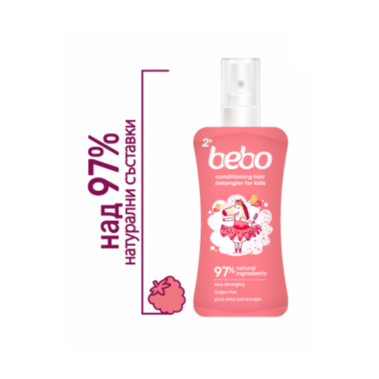 БЕБО ДЕТСКИ СПРЕЙ-БАЛСАМ ЗА ЛЕСНО РАЗРЕСВАНЕ МАЛИНА 150МЛ е специално създаден за заплетената коса на малкита момиченца. Благодарение на него може да се избегне стреса от разресването и то да стане нежно и без болка. Създава изглаждащ филм върху всеки косъм чрез комбинацията от фосфолипиден и протеинов комплекс. Фосфолипидният комплекс от сафлорово масло омекотява и предотвратява заплитането, а комплексът от аминокиселини хидратира, укрепва и защитава косъма. При редовната употреба косата изглежда силна, жизнена и с блясък.