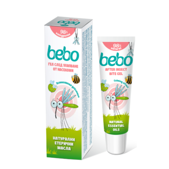 Когато пътят към великите открития минава през треви и срещи с насекоми, гелът на bebo е вашият най-верен съюзник. Специално разработената формула с 98% натурален състав мигновено успокоява кожата след ухапвания от комари, оси, пчели, мухи и други насекоми, както и при дразнения от допир с растения.