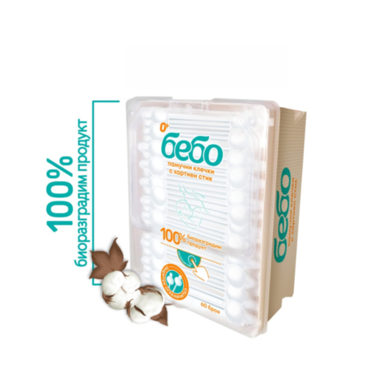 Биоразградими памучни клечки за уши за бебета с две глави от 100% чист памук и стабилна хартиена дръжка. Здрави и удобни за използване с грижа за безопасността.