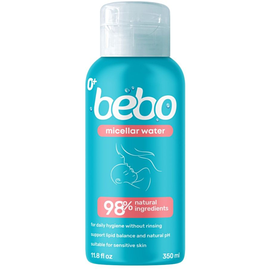 Мицеларната вода от Bebo е предназначена за ежедневната хигиена на бебето. Тя нежно и ефективно почиства кожата, като запазва естественото рН и липидния баланс. Комплексът от аминокиселини предпазва от изсушаване и създава трайно усещане за комфорт.