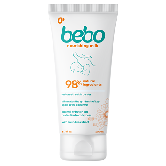 Подхранващото мляко за тяло бебо с над 98% натурални съставки осигурява незабавна хидратация и дълготрайна защита от напукване и сухота. Екстрактът от невен успокоява кожата и предпазва от раздразнения. Растителните фосфолипиди заздравяват кожната бариера създават дълготраен полупропусклив защитен филм, който действа като втора кожа без да запечатва и пречи на естествените процеси.