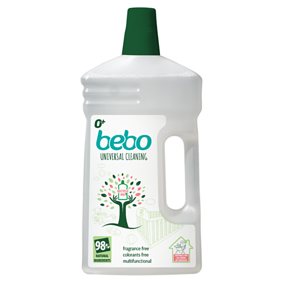 БЕБО УНИВЕРСАЛЕН ПОЧИСТВАЩ ПРЕПАРАТ 1Л - Мултифункционален екологичен препарат за почистване, който осигурява отлична хигиена на всички миещи се повърхности в обкръжението на бебето и детето. Натурален състав с отлична почистваща сила. Не съдържа аромат и оцветители.