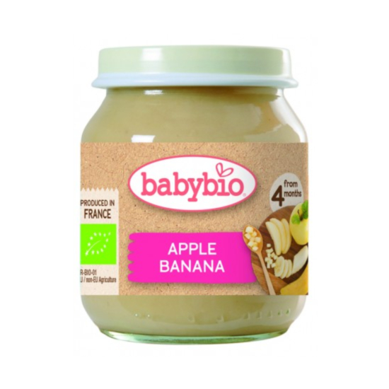 БЕЙБИ БИО ПЛОДОВО ПЮРЕ С ЯБЪЛКА И БАНАН 130ГР. 4М+