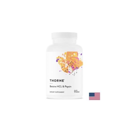 Betaine HCL & Pepsin на американската компания Thorne е висококачествен продукт в подкрепа на храносмилането и храносмилателния тракт.