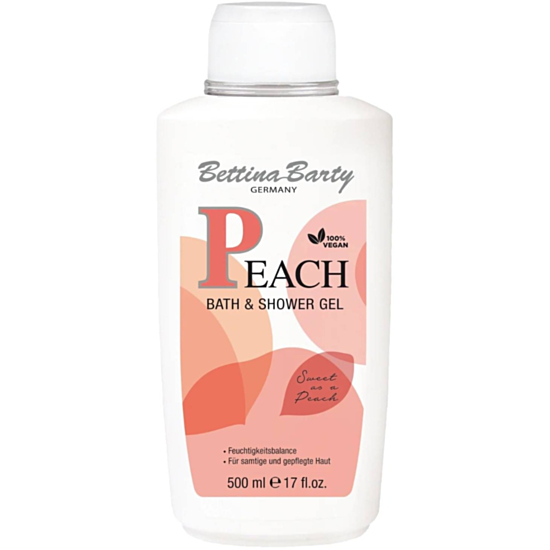 Гелът за душ и вана Peach на Bettina Barty е нежен измиващ продукт, създаден с грижа за кожата и обогатен с чудесен траен аромат на праскова. Той оставя неповторима мекота, като същевременно има ефективно почистващо действие и прави кожата по-здрава, еластична и свежа. Продуктът е подходящ за ежедневна употреба и за всеки тип кожа. Той е дерматологично тестван и внася сладкия аромат на сочна праскова в ежедневнана грижата за освежаващо и ревитализиращо изживяване.