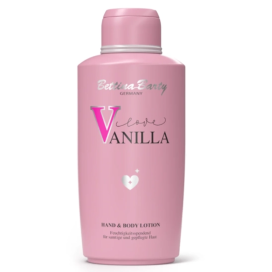Bettina Barty Love Vanilla лосион за ръце и тяло е подходящ за всеки тип кожа. Специалната формула на продукта е с дълготрайно овлажняващо действие, което предпазва кожата от изсушаване. Лосионът оставя усещане за нежна мекота и свежест през целия ден. Лосионът подхранва, хидратира и прави кожата еластична и гладка. С нежен аромат на ванилия.AQUA, ETHYLHEXYL STEARATE, GLYCERYL STEARATE, GLYCERIN, PARAFFINUM LIQUIDUM, CETEARYL ALCOHOL, CETEARETH-20, PARFUM, PHENOXYETHANOL, XANTHAN GUM, DIMETHICONE, PANTHENOL, CETYL PALMITATE, CETEARETH-12, ALLANTOIN, BENZOIC ACID, BENZYL SALICYLATE, SODIUM METABISULFITE, TETRASODIUM EDTA, DEHYDROACETIC ACID, LINALYL ACETATE, SODIUM HYDROXIDE, LINALOOL, VANILLIN, DIMETHYL PHENETHYL ACETAT, CITRONELLOL, GERANYL ACETATE, ISOEUGENYL ACETATE, POGOSTEMON CABLIN OIL, GERANIOL, CANANGA ODORATA OIL/EXTRACT, BENZYL BENZOATE, EUGENOL, HYDROXYCITRONELLAL, ROSE KETONES.
