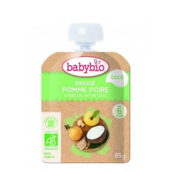 БЕЙБИ БИО КОКОСОВ ДЕСЕРТ С КРУШИ И ЯБЪЛКИ 85ГР. 6М+ е предназначен за деца над 6 месечна възраст, специално създаден в практична пауч опаковка, която лесно и удобно по-големите деца могат да държат в ръцете си и да се насладят на плодовите си пюрета като големи хора. Плодовете трябва задължително да присъстват в здравословното детско меню, тъй като са богати на витамини и минерали, които допринасят за правилното развитие на бебето.